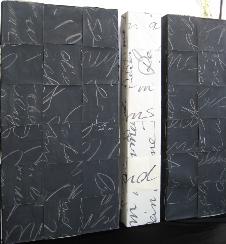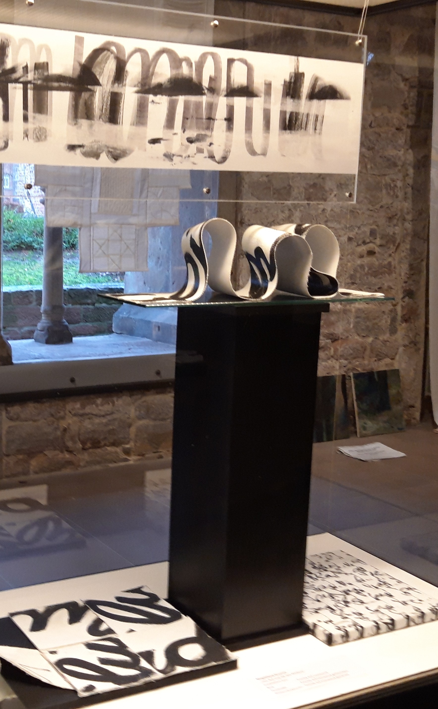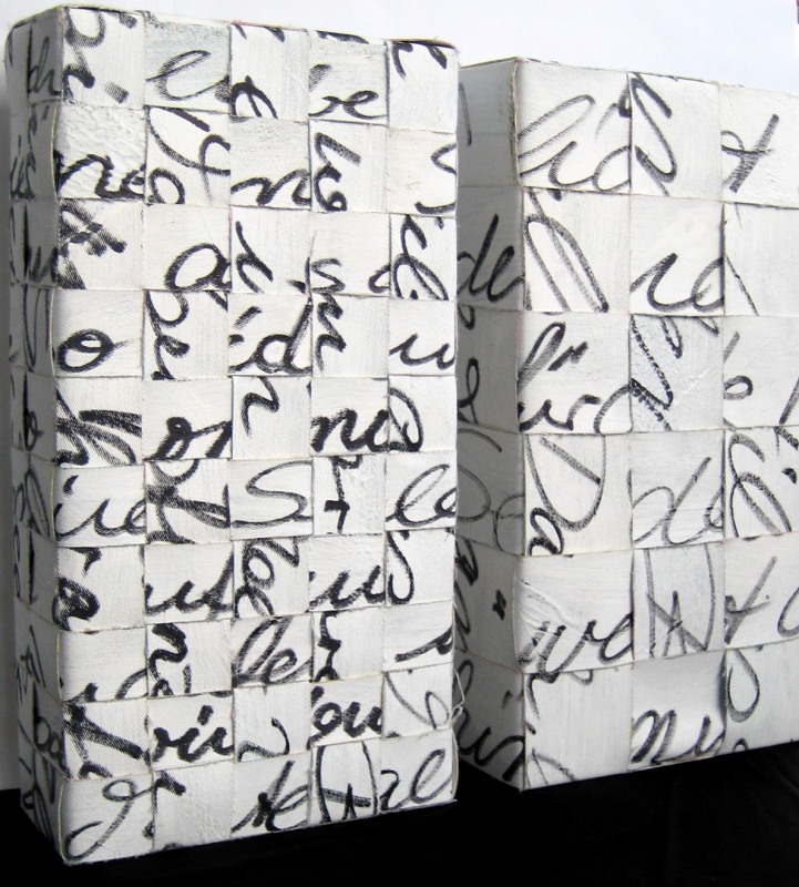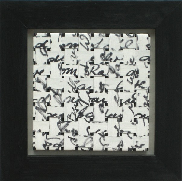 Die räumliche Weiterentwicklung mit dem Titel Gedankenräume führt zu Arbeiten in unterschiedlichsten Leinwandverflechtungen auf Karton und Holz.